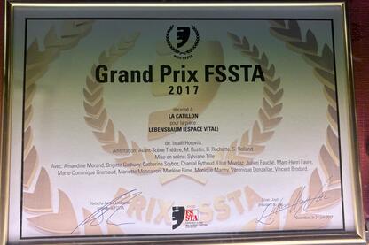 La troupe de la Catillon a remporté ce week-end la première édition du Grand Prix de la Fédération suisse des sociétés théâtrales d’amateurs (FSSTA) avec Lebensraum d’Israël Horowitz. Mise en scène par Sylviane Tille, la pièce a été jouée en novembre 2016 à la Gare aux sorcières, à Moléson.