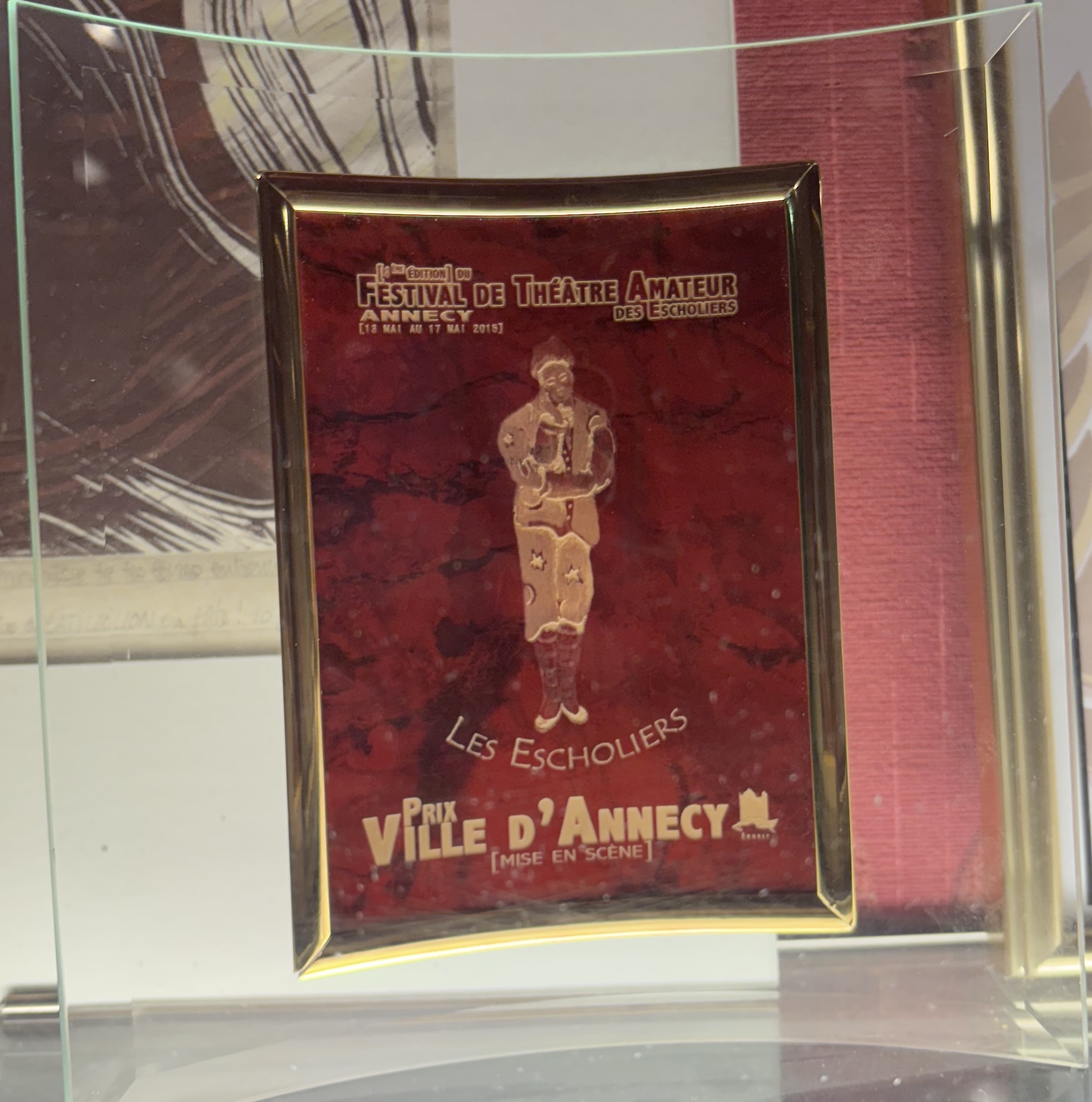 Prix de la mise en scène en 2015 au Festival de Théâtre Amateur des Escholiers à Annecy.