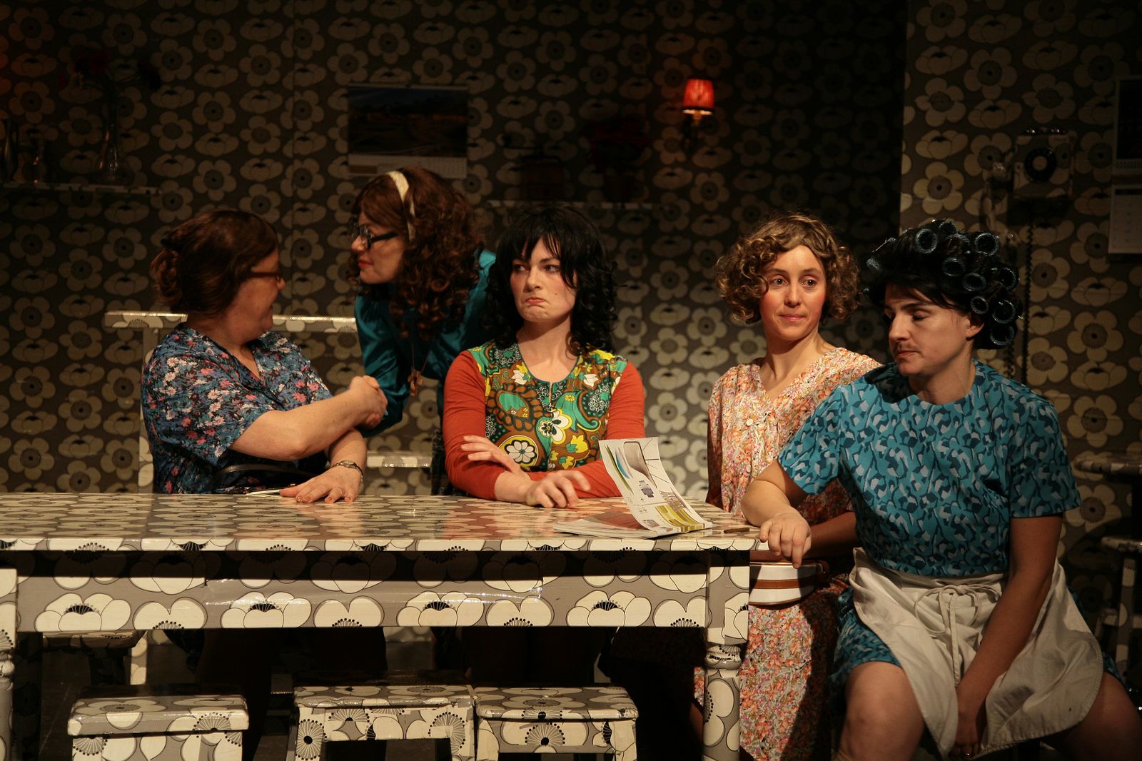 Dans une cuisine animée, des femmes se retrouvent autour d’un concours d’autocollants à coller.
